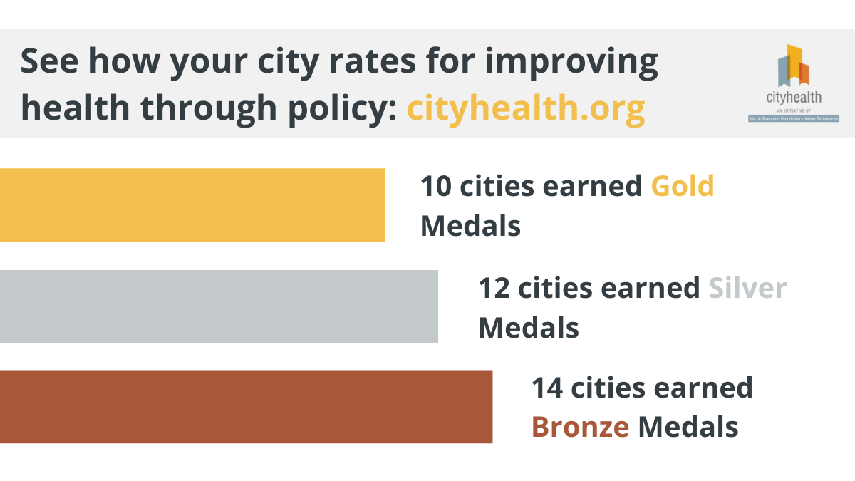 On Tuesday, December 8, 2020, CityHealth released its policy ratings of the nation’s 40 largest cities. The ratings are determined by an evaluation of nine health-related policies that help residents and communities thrive.
